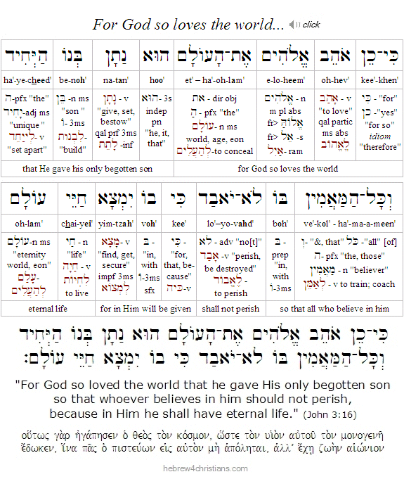 John 3:16 Hebrew reading: